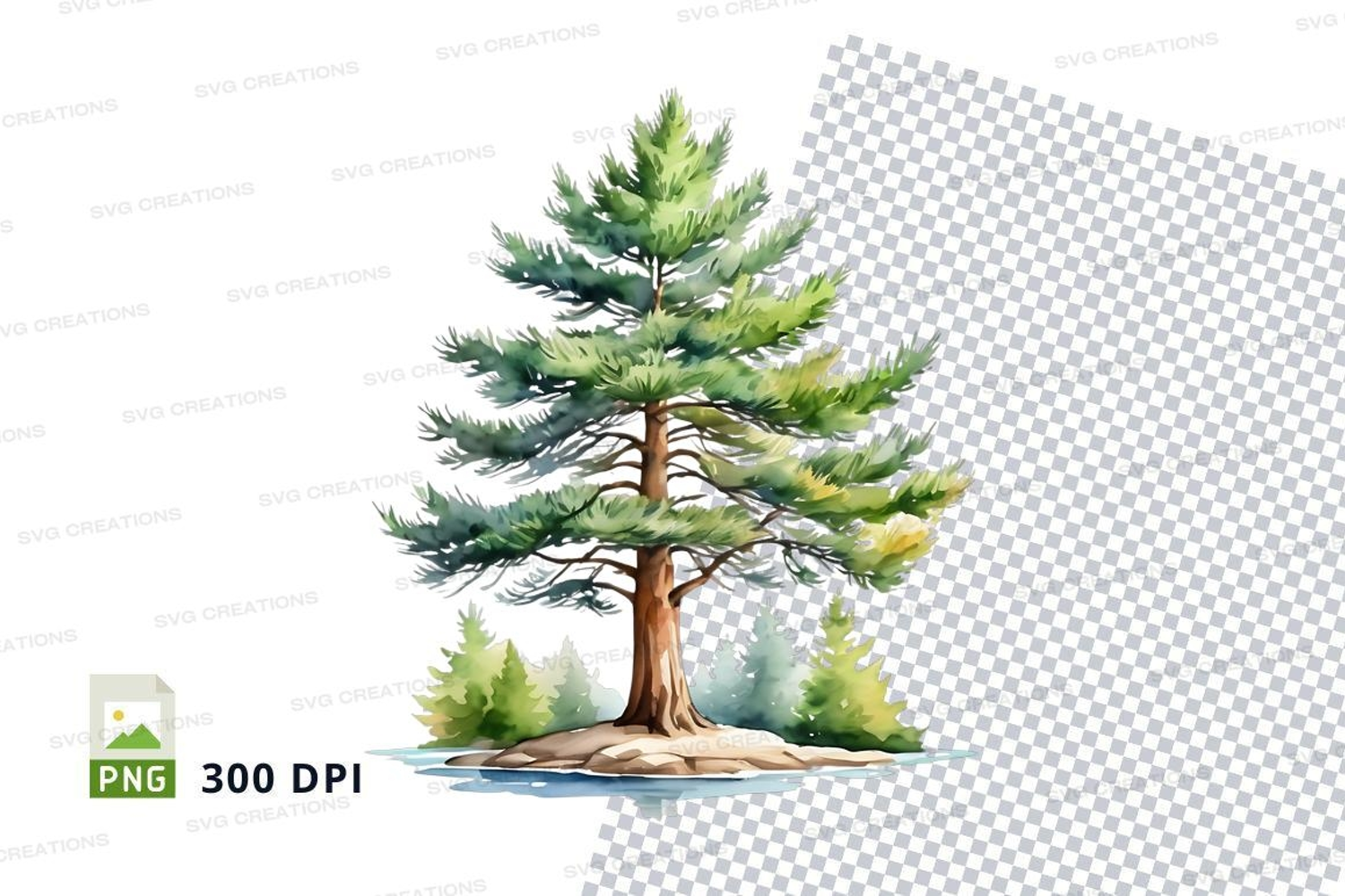 Watercolor Nature Clipart Pine Tree Transparent Background Island 300 Dpi