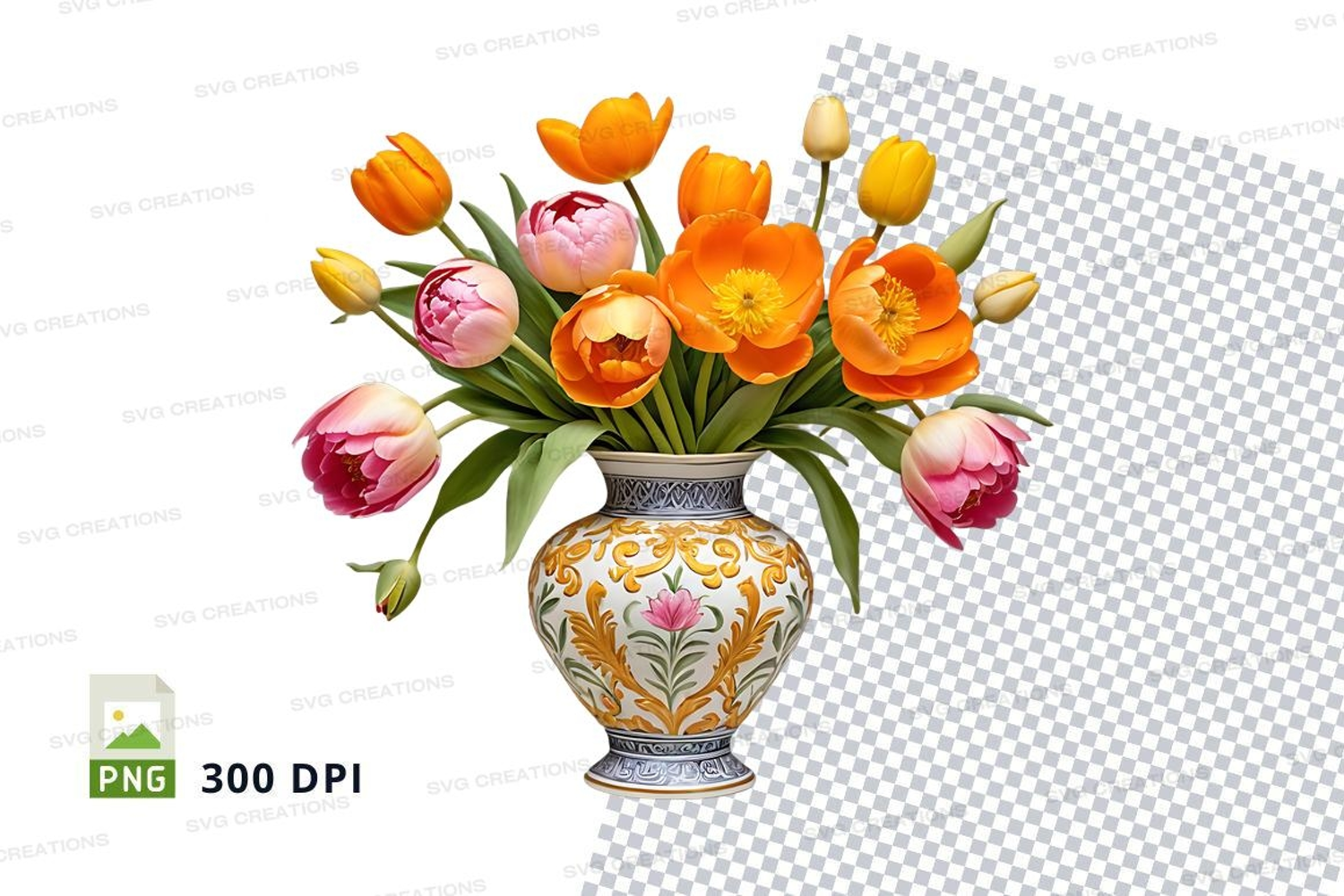 Decorative Flowers Png Transparent Background Vase 300 Dpi Tulips Patterned