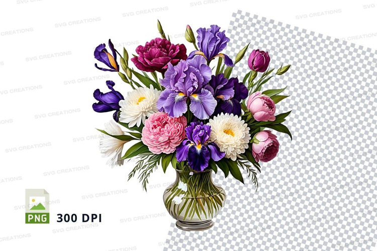 Pink Flowers Iris Peonies Purple Flowers Transparent Background Vase Flower Bouquet 300 Dpi White Flowers Chrysanthemums