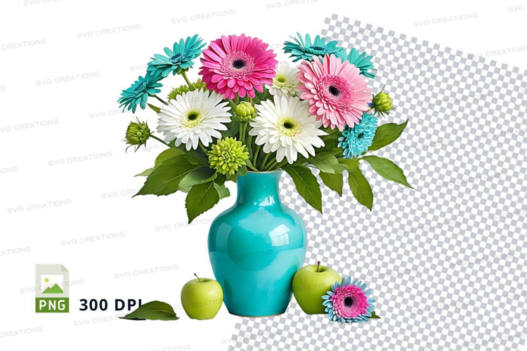 Clipart Flower Bouquet Apples Chrysanthemums Blue Vase Gerbera Daisies High-resolution Png