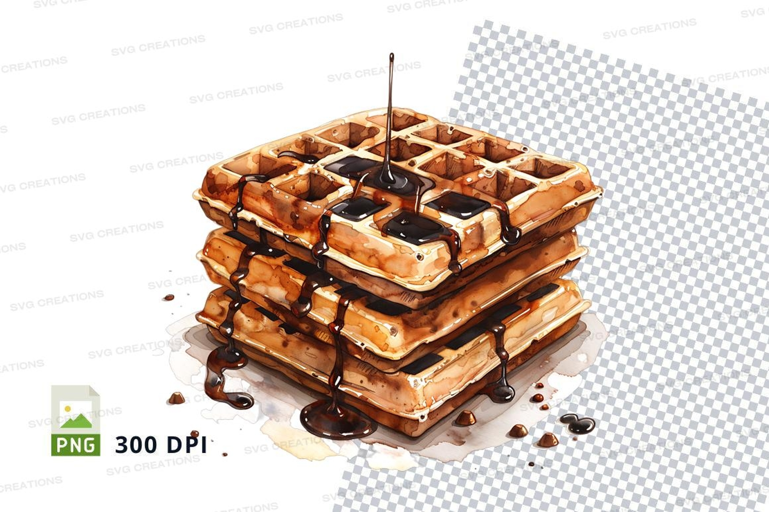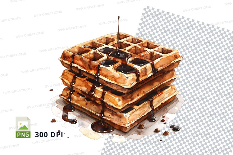Stack of waffles with chocolate syrup mockup example image 1