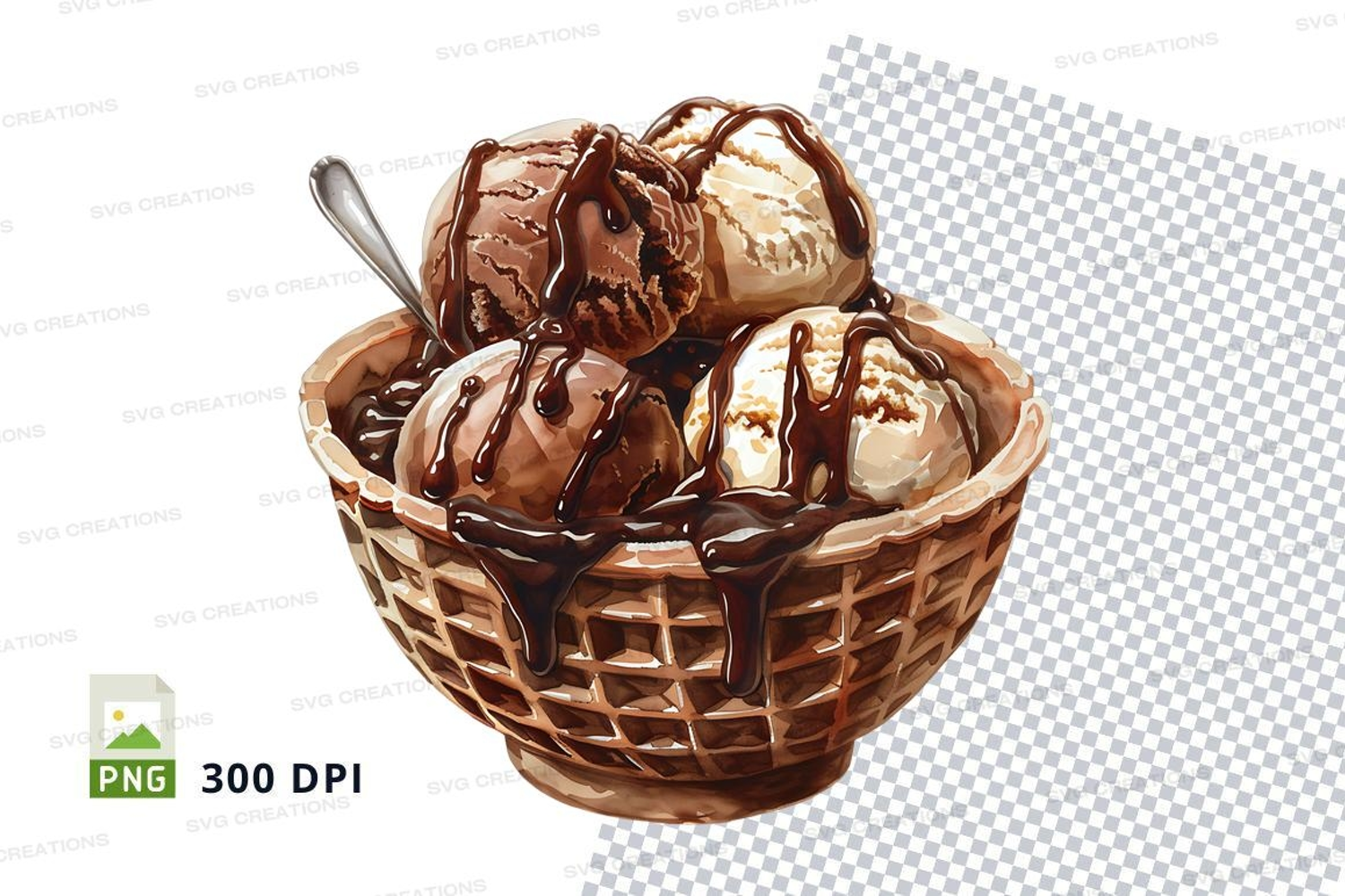 Similar Design Products to Ice cream scoops in basket mockup