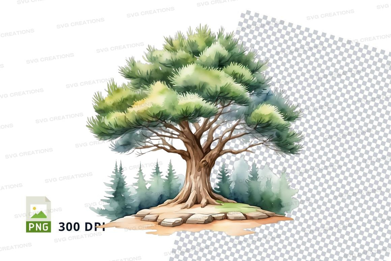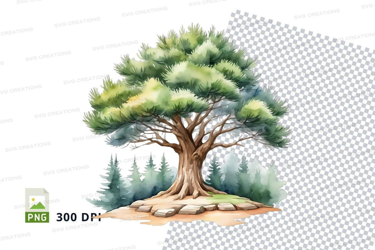 Watercolor pine tree clipart png example image 1