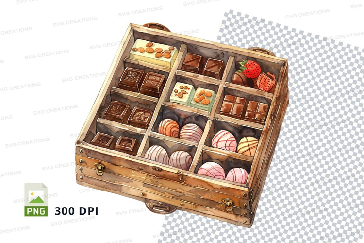 Wooden box mockup with assorted sweets and chocolates example image 1