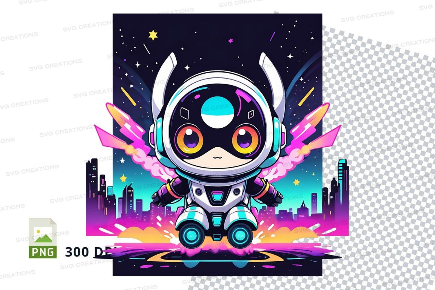 Cartoon T-shirt Futuristic Mockup Cityscape Robot Astronaut