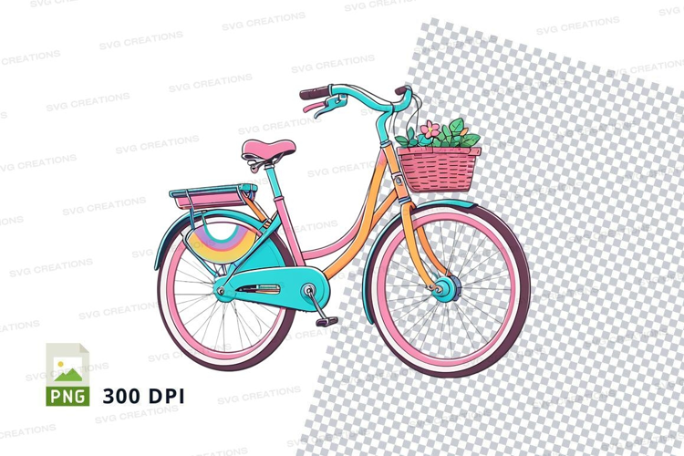 Vintage Retro Pink Flowers Clipart Yellow Png Bicycle Turquoise Basket