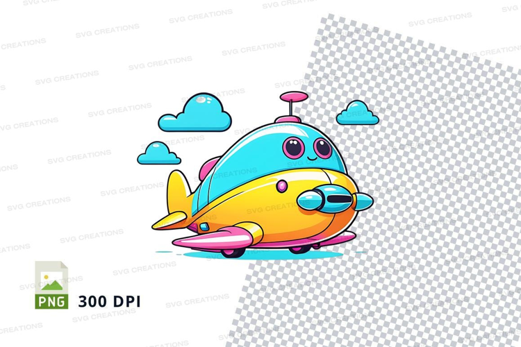 Illustration Cartoon Whimsical Gradient Fish Airplane Clouds