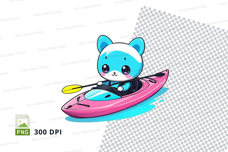 Cartoon Panda Kayaking Funny Animal Pink Kayak Yellow Paddle Blue And White Panda Water Activity