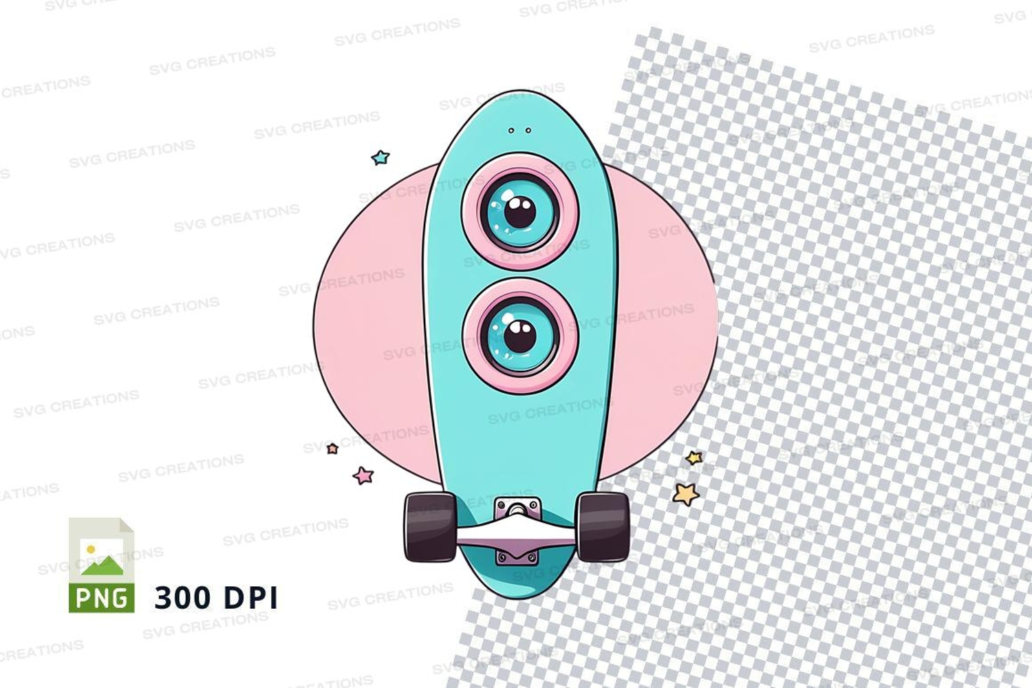 Illustration Cartoon Pink Skateboard Clipart Blue Png Eyes 300 Dpi