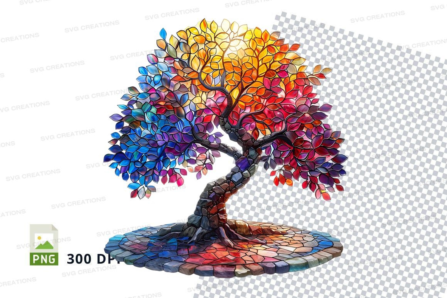 Tree Colorful Artistic Clipart Design Element Transparent Background Stained Glass