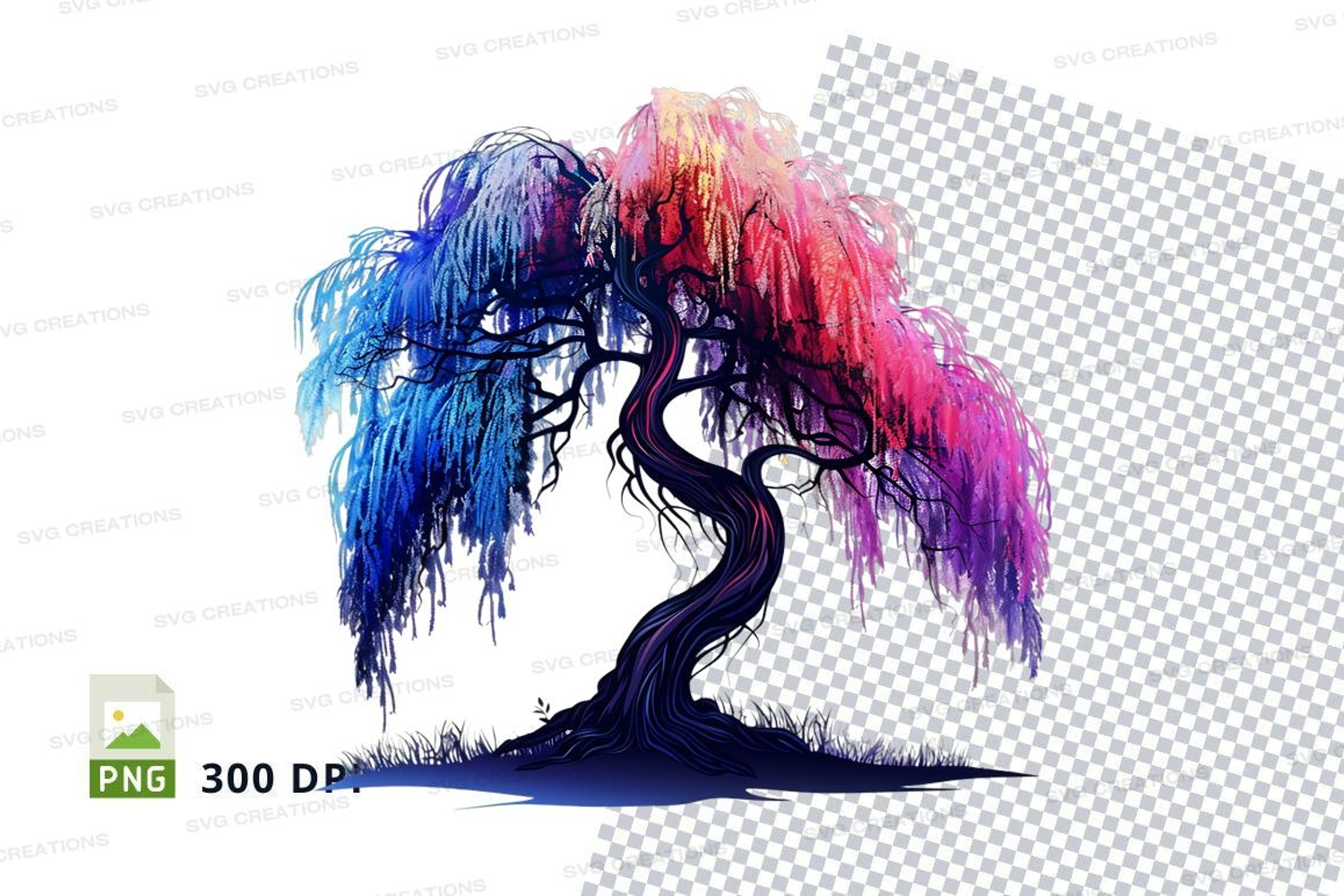 Illustration Pink Tree Colorful Artistic Blue Branches Transparent Background Willow Tree Twisted Trunk