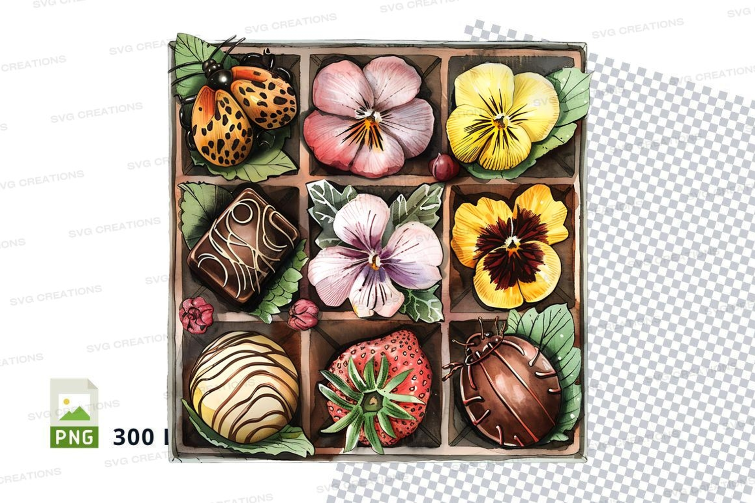 Illustration Nature Flower Clipart Butterfly Insect Ladybug Beetle Wooden Box Pansy