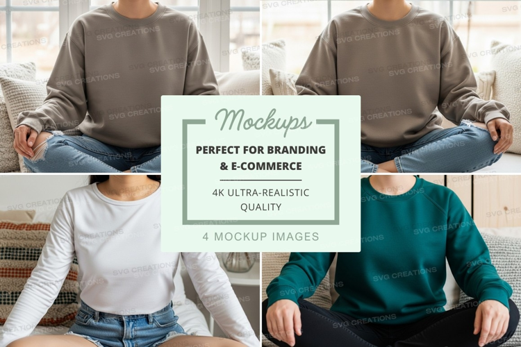 Mockup Beige Teal White Indoor Couch Sweatshirt Relaxed Models Indoor Setting