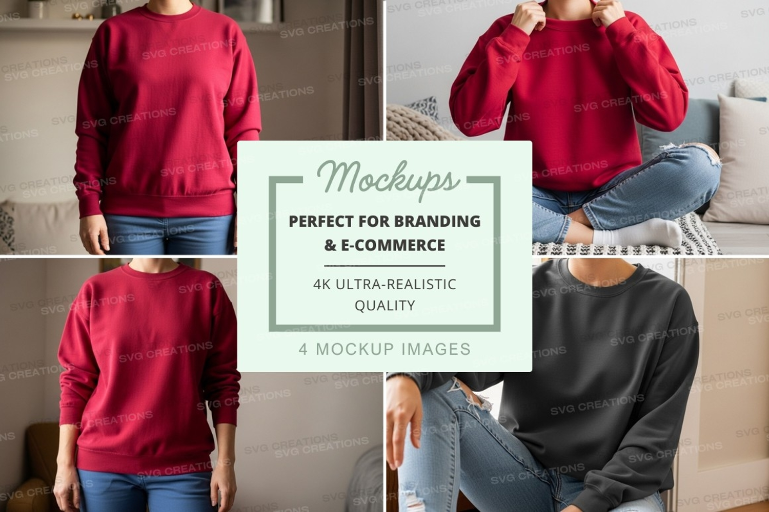 Black Mockup Red Sweatshirt Long Sleeve Crew Neck Casual Wear Indoor Setting