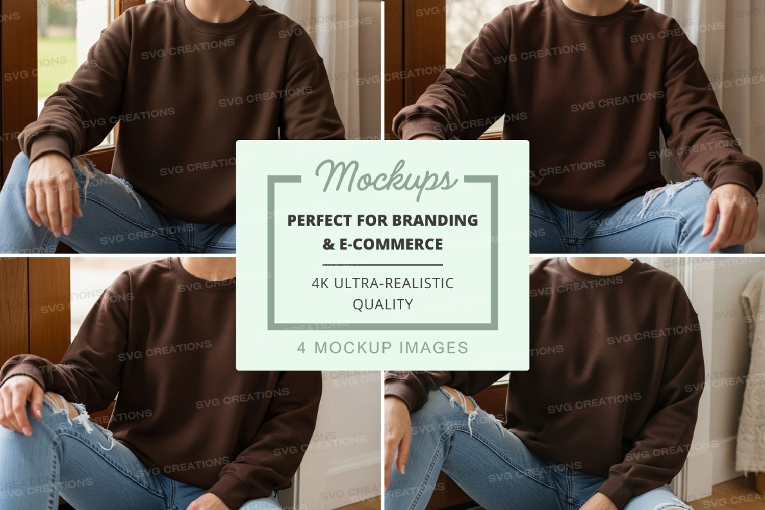 Casual Mockup Collage Brown Jeans Indoor Sweatshirt Crew Neck