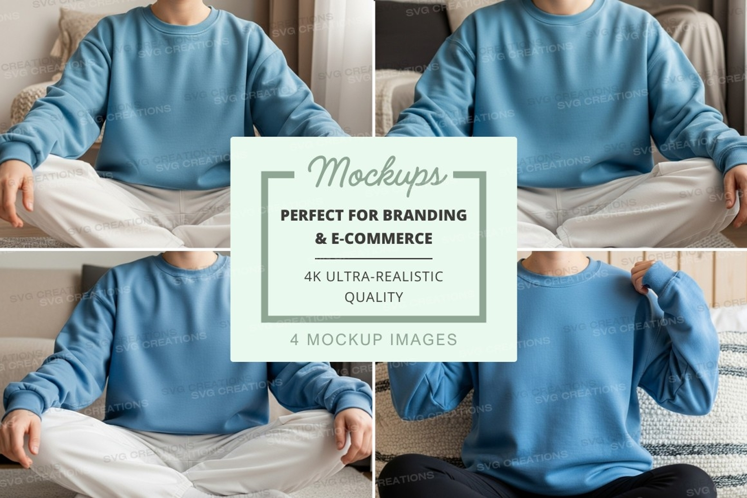 Four-person sweatshirt mockup in light blue