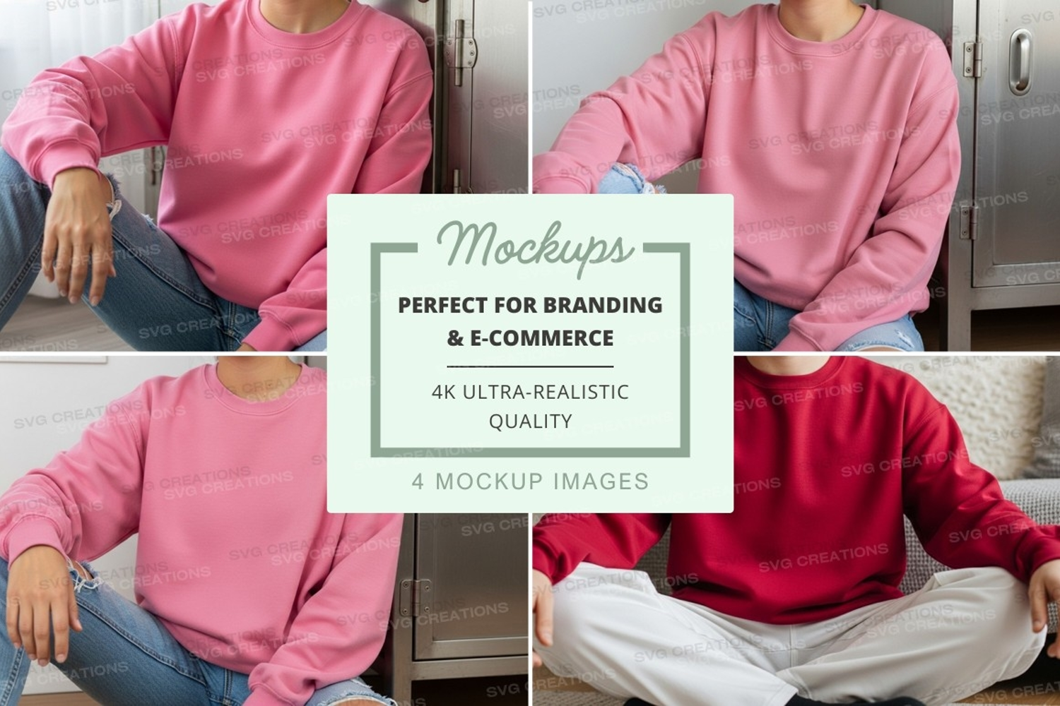 Fashion Mockup Model Bench Casual Wear Red Sweatshirt Oversized Sweatshirt Pink Sweatshirt