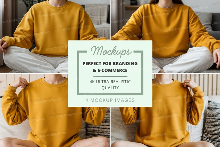 Similar Design Products to Mockup of yellow sweatshirt with various views