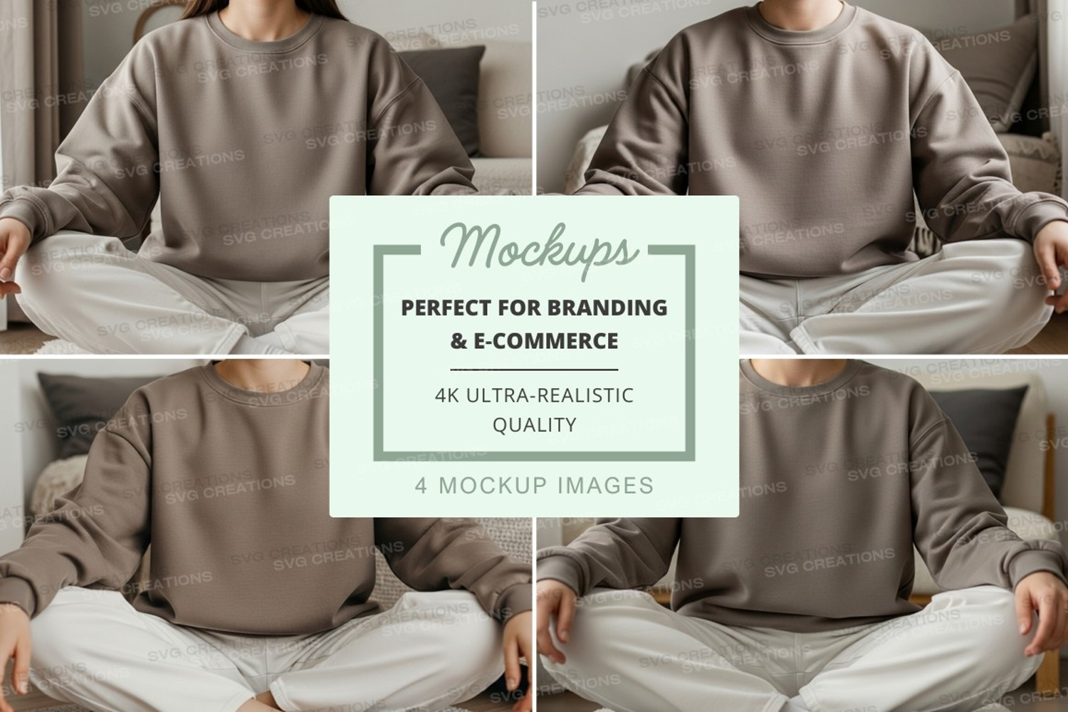 Design Mockup Model Gray Sweatshirt Fit Crew Neck Oversized Fit
