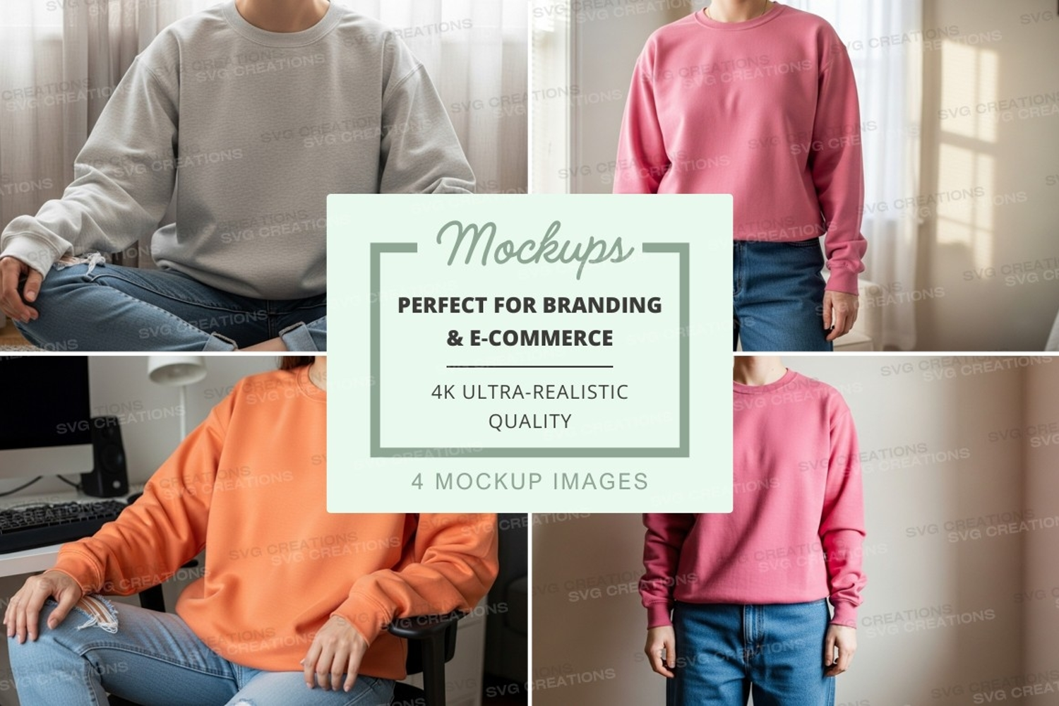 Mockup Model Sweatshirt Crew Neck Sweatshirt Mockup Casual Wear Color Variations Indoor Setting