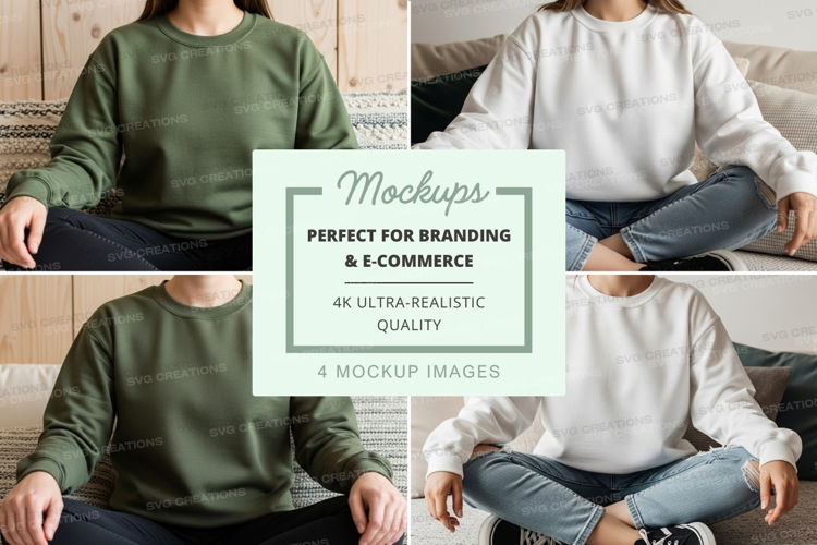 Mockup of two individuals wearing long-sleeve crew neck swea