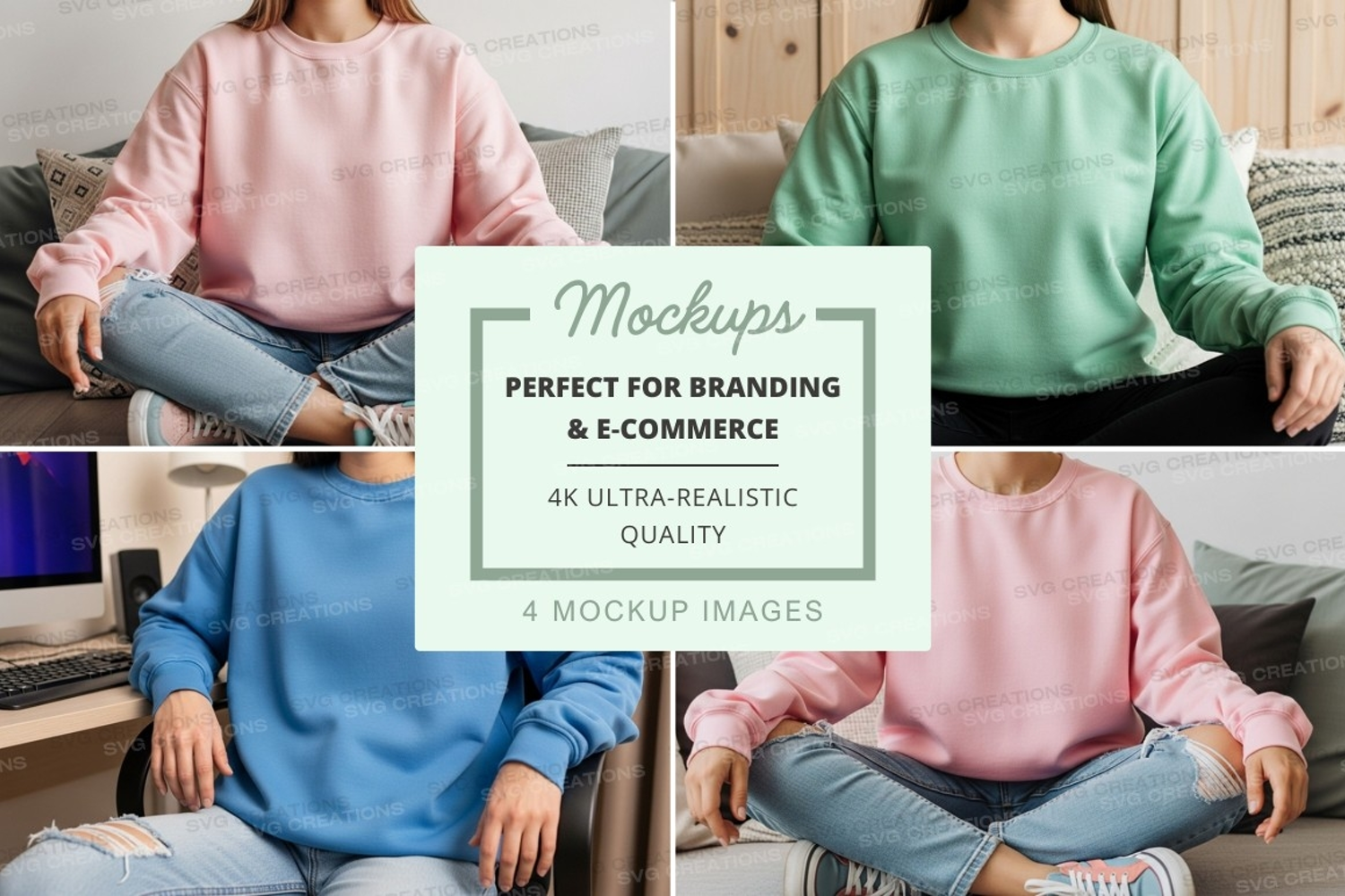 Sweatshirt mockup with models in various colors