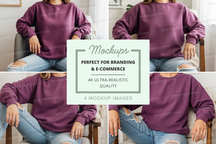 Mockup Woman Purple Chair Sweatshirt Oversized Casual Wear