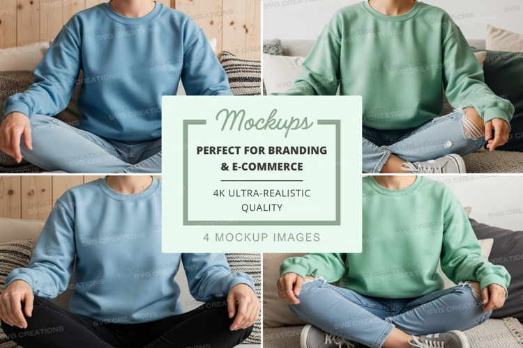 Green Mockup Blue Bed Relaxation Indoor Sweatshirt Cross-legged