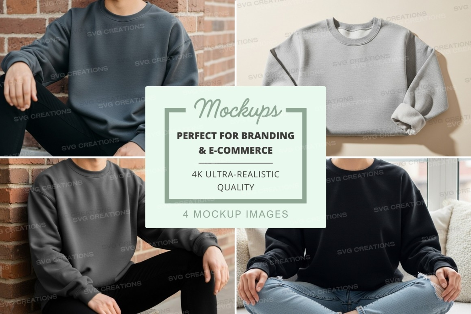 Fashion Mockup Apparel Sweatshirt Crew Neck Sweatshirt Mockup Brick Wall Background