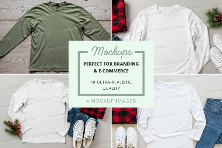 Jeans Flat Lay Sneakers T-shirt Mockup Holiday Decorations Casual Wear Long Sleeve T-shirt