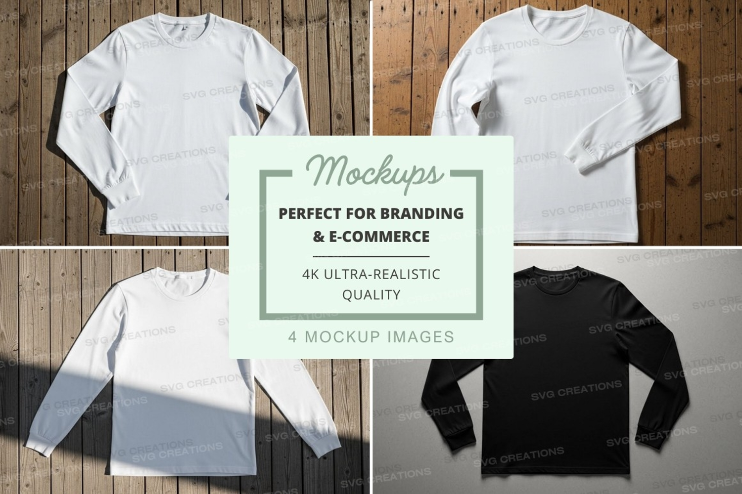 Mockup T-shirt Design Apparel Mockup Wooden Background White T-shirt Black T-shirt Long Sleeve T-shirt