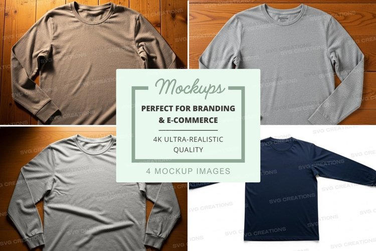 Mockup Beige White Background Navy Blue Light Gray Dark Gray Wooden Surface Long Sleeve T-shirt