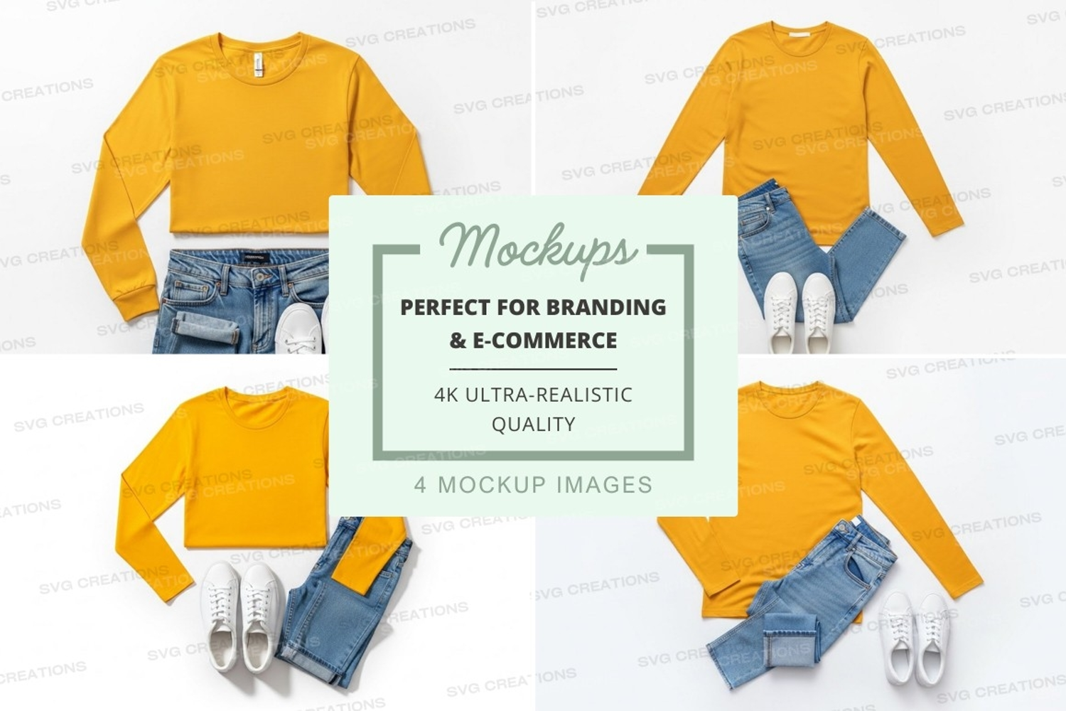 Similar Design Products to Mockup of yellow long sleeve crop top with jeans and sneaker