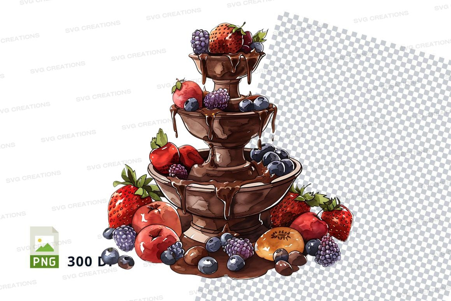 Similar Design Products to Chocolate fountain with berries clipart png