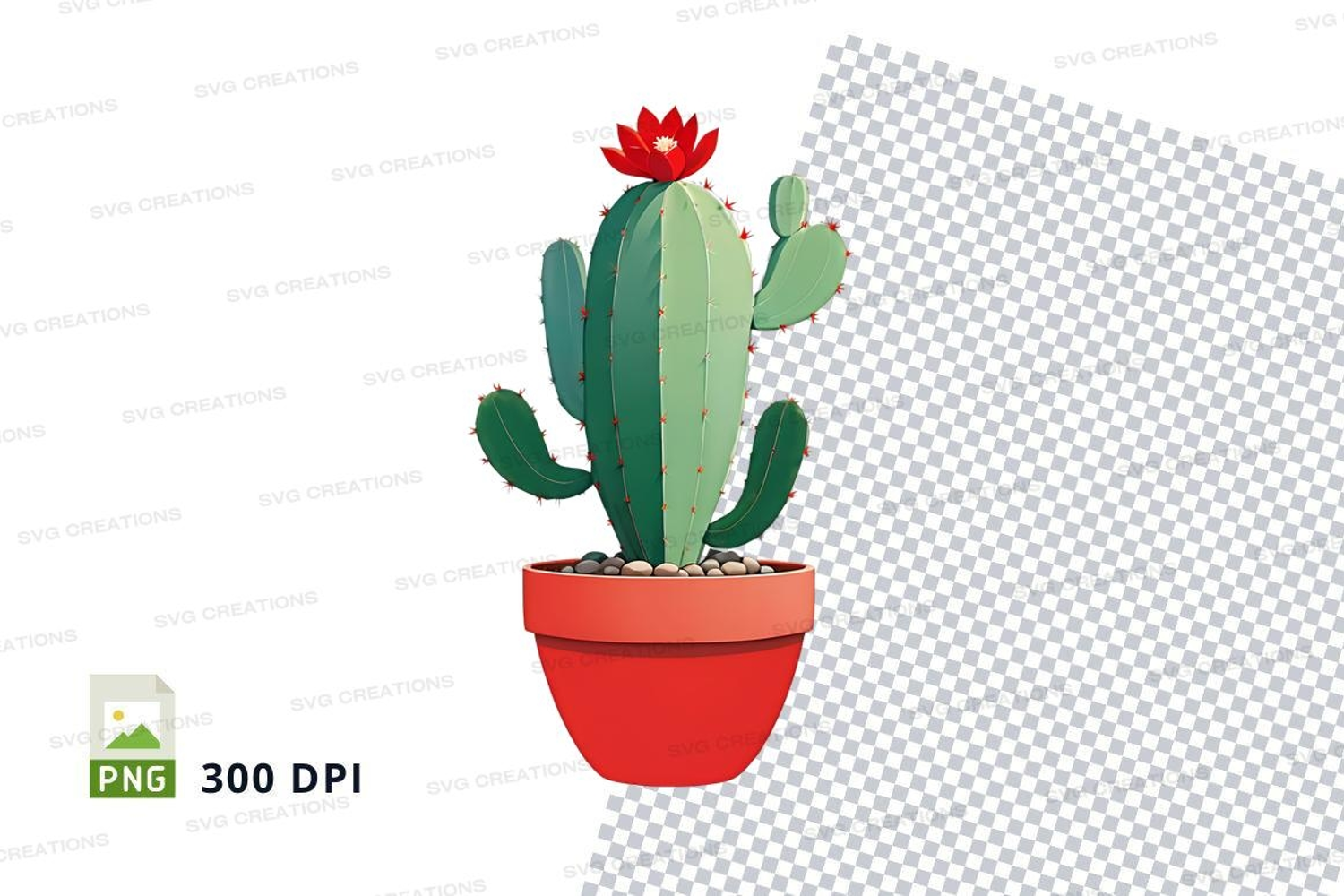 Cactus in red pot clipart png example image 1