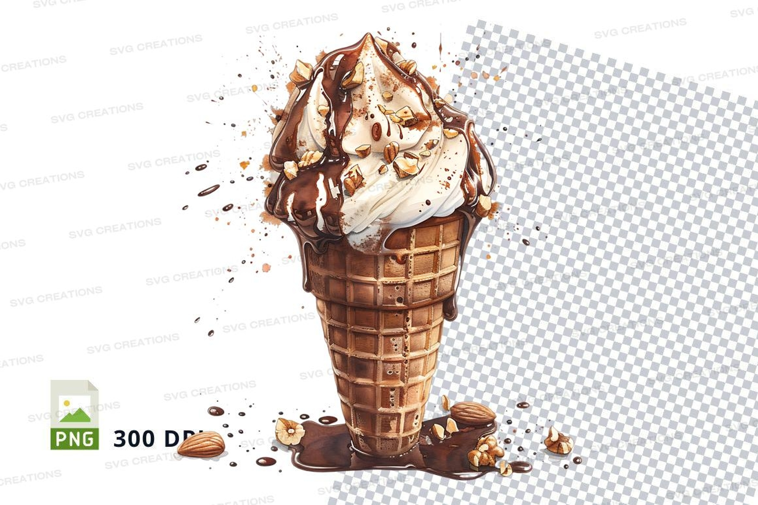 Food Mockup Png Ice Cream Dessert Chocolate Cone Nuts 300 Dpi Drizzle