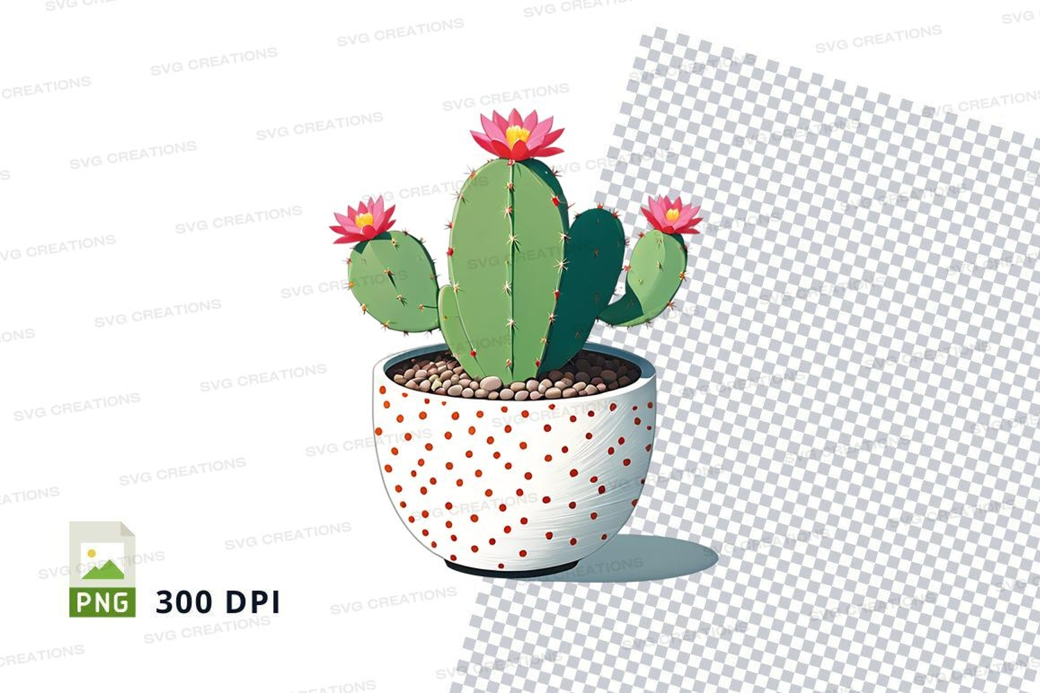 Flowers Clipart Plant Png Transparent Background Polka Dot Cactus Pot 300 Dpi