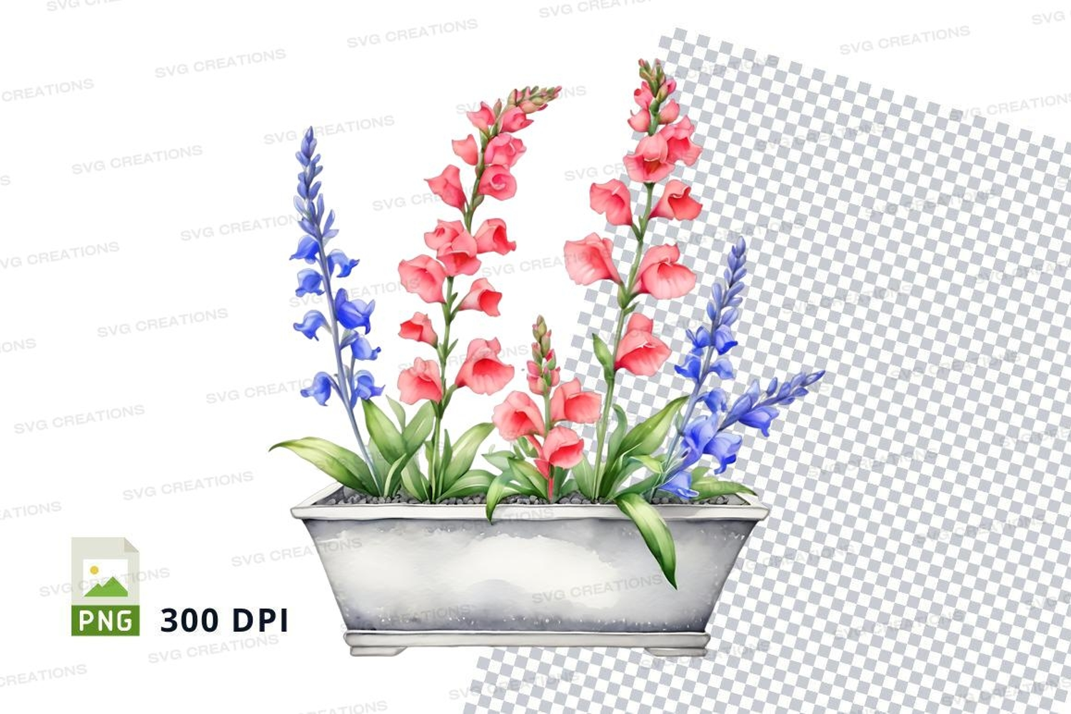 Watercolor Pink Flowers Blue Flowers Transparent Background 300 Dpi Flower Pot Clipping Path