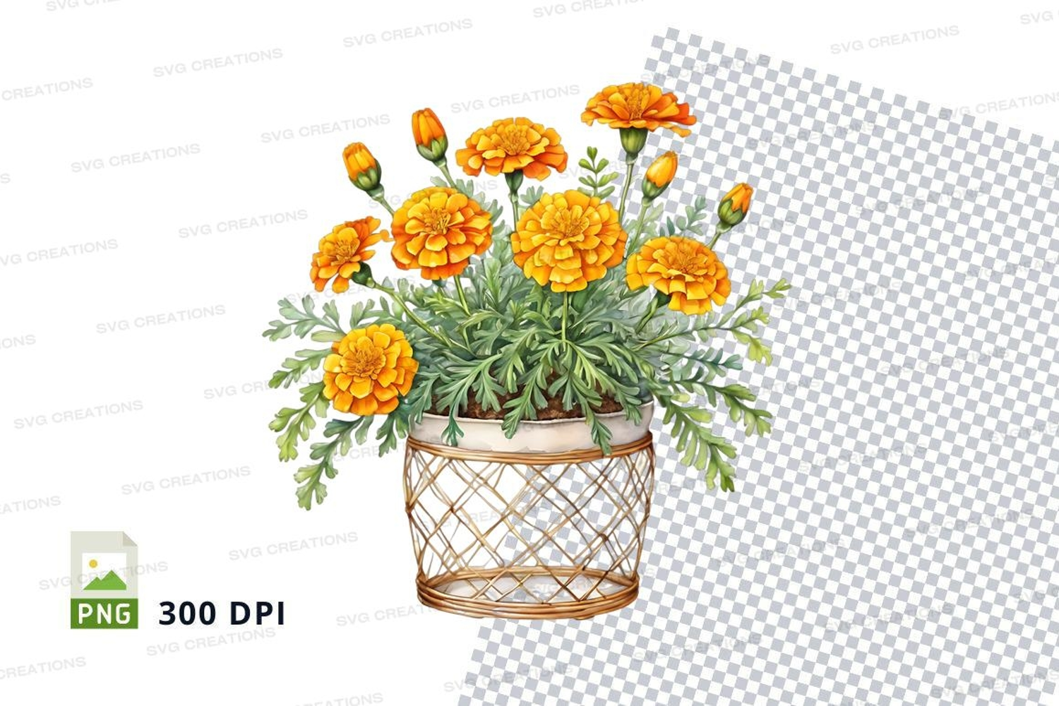 Similar Design Products to Flower pot with orange marigolds clipart png