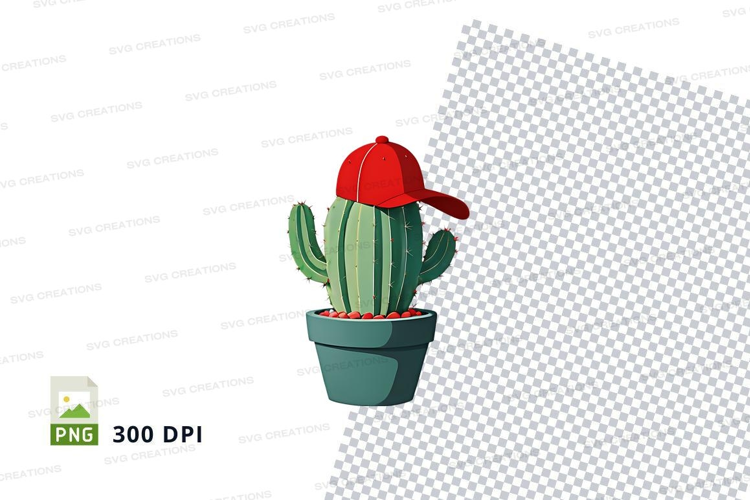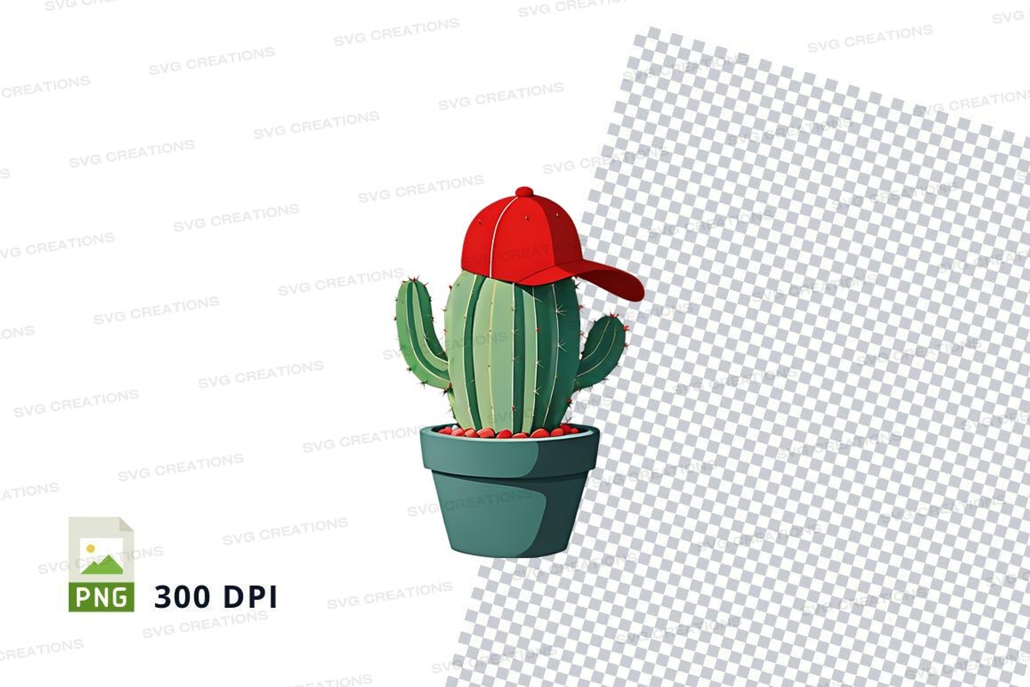 Cactus in a pot wearing a red baseball cap clipart png example image 1