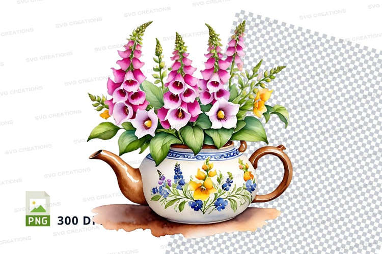 Decorative Illustration Pink Flowers Clipart Yellow Png Teapot Floral Design 300 Dpi