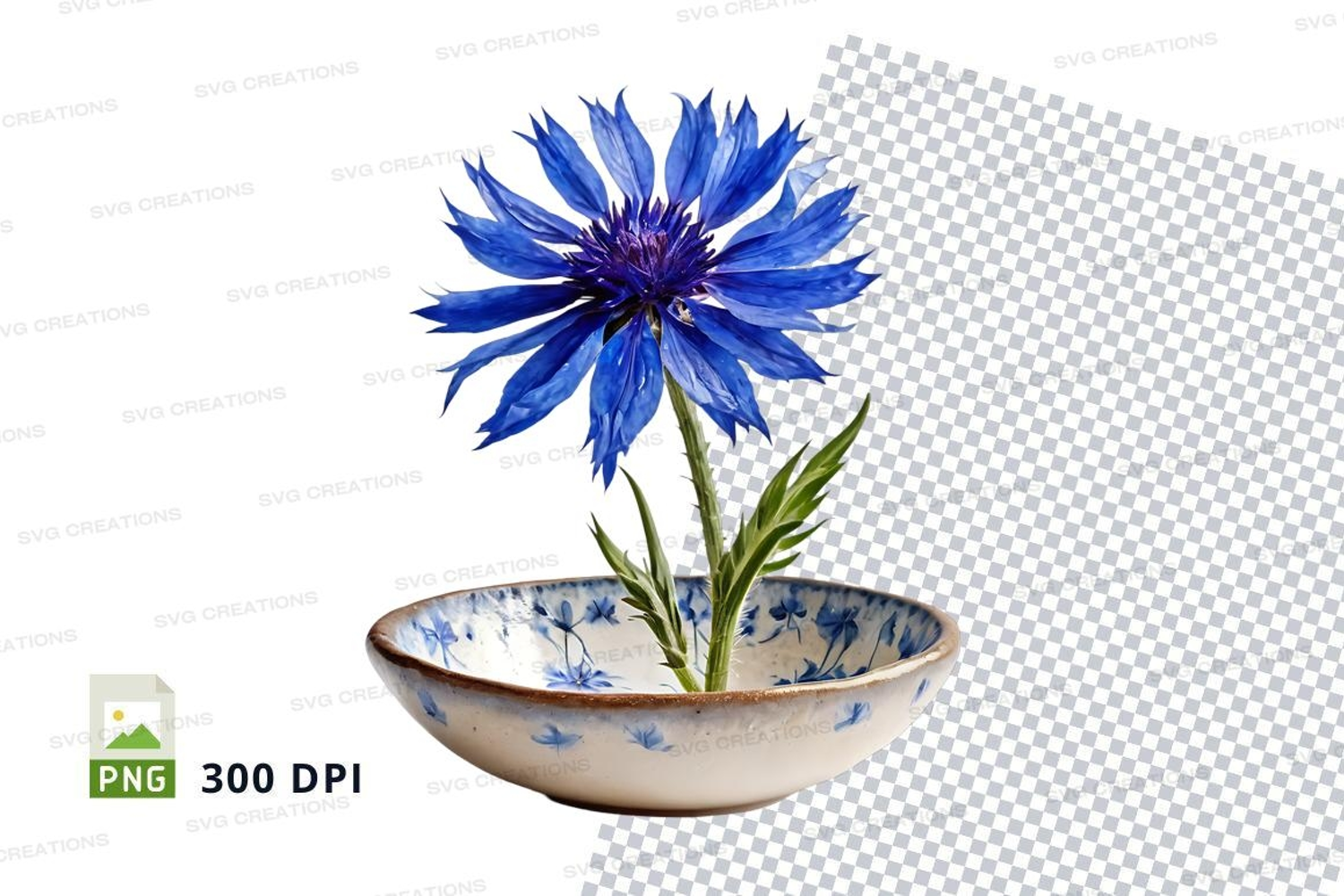 Blue flower in decorative bowl clipart png example image 1