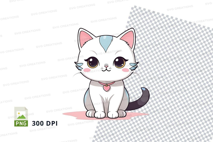 Cartoon Pink Heart Clipart Sitting Cat White Background Large Eyes