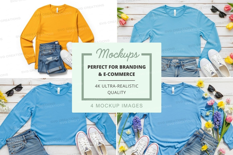 Similar Design Products to Flat lay mockup of long sleeve t-shirts and accessories
