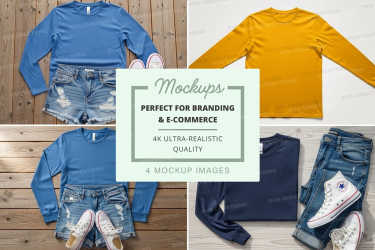 Flat lay mockup of long sleeve t-shirts and casual outfits