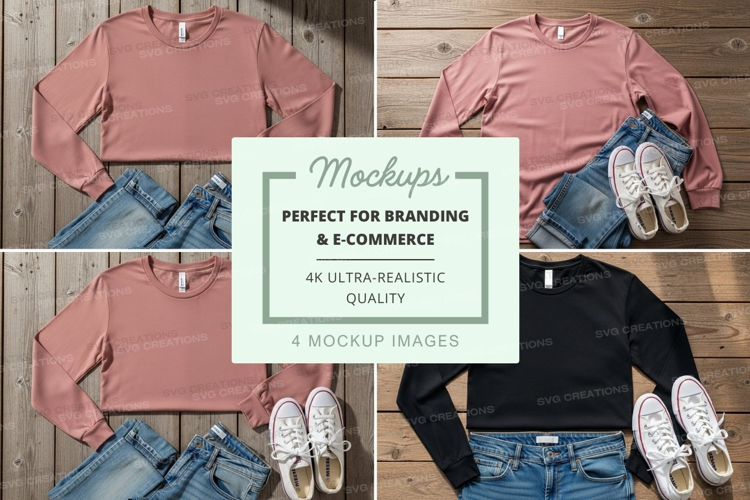 Similar Design Products to Flat lay mockup of long sleeve t-shirts with jeans and sneak