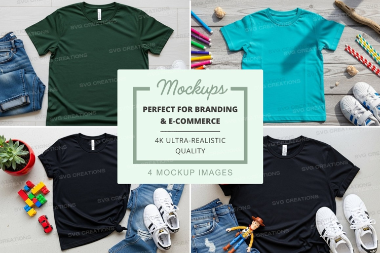 T-shirt Jeans Toys Plants Sneakers T-shirt Mockup Black T-shirt Red T-shirt Turquoise T-shirt Dark Green T-shirt
