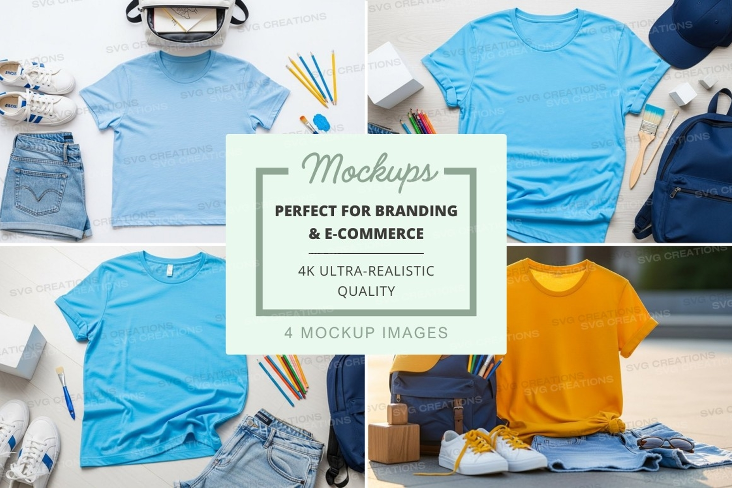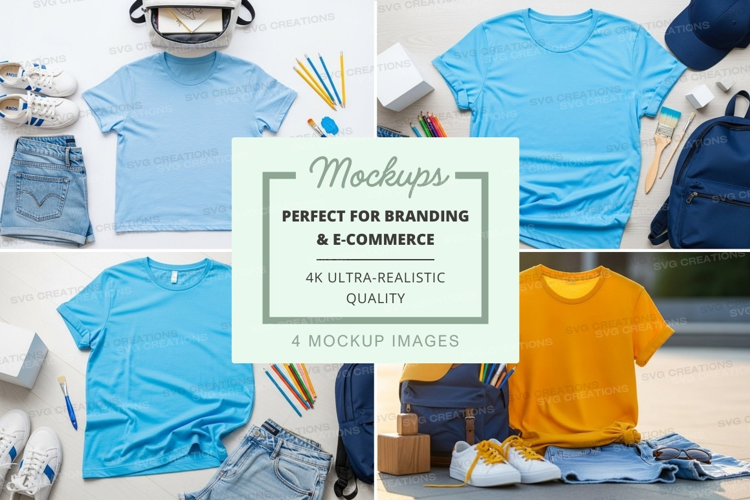 T-shirt Mockup Blue Yellow Backpack Accessories School Supplies Sneakers Art Supplies Denim Skirt