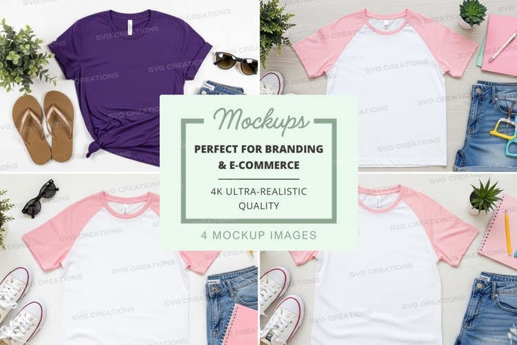 T-shirt Pink Mockup Purple White Accessories Sunglasses Plants Sneakers Denim Shorts