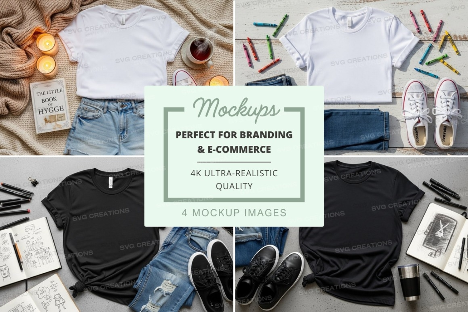 Stationery Black T-shirt Mockup Jeans White Accessories Shoes